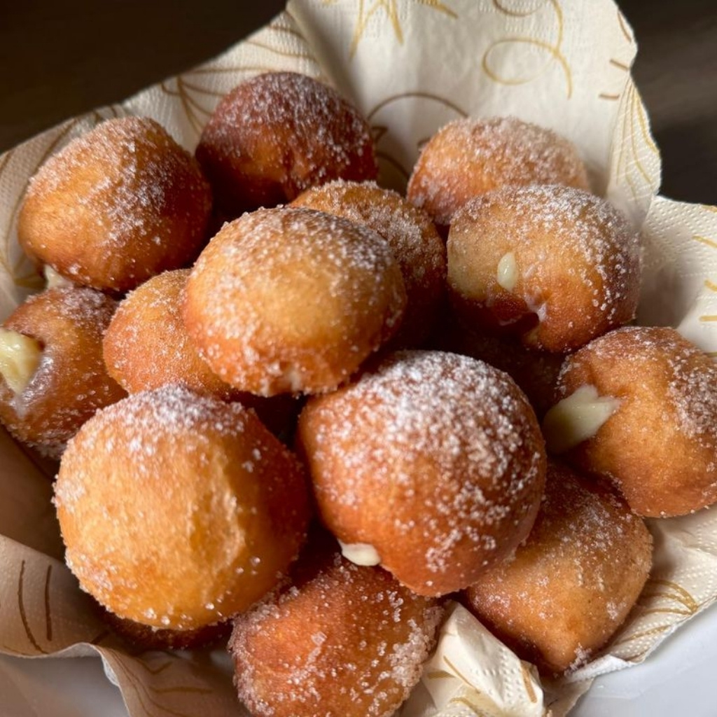 (čerstvo smažené minišišky s vanilkovým pudingom a topingom podľa výberu) 200 gr.