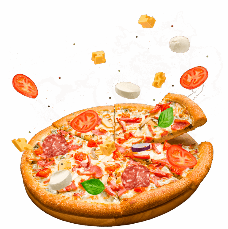 (paradajkový základ, saláma, oravská slanina, šampiňóny, červená cibuľka, syr)