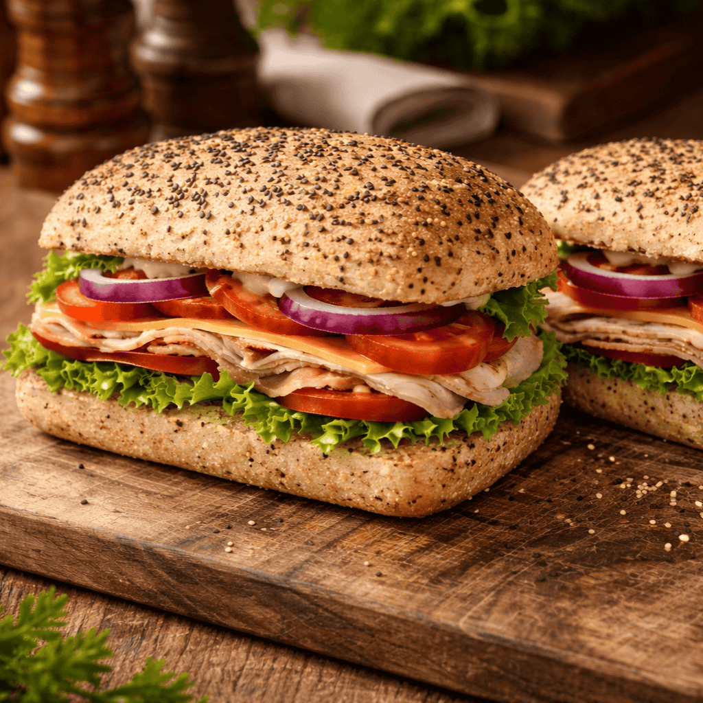 Sendviče, hamburger, žemľa , pagáčiky – obsahujú gluten a sú sypané sézamom